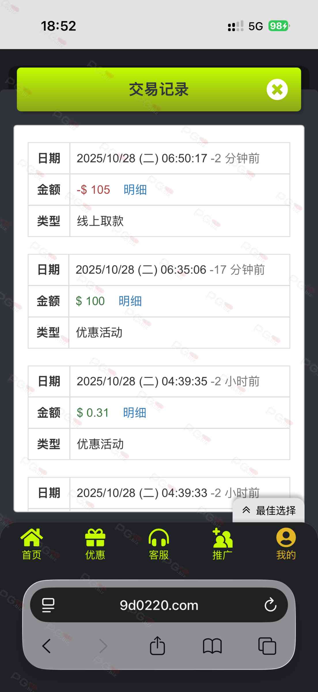 撸成功的老哥,请跟客服说您是从PG论坛 【PG.Biz】过来的。