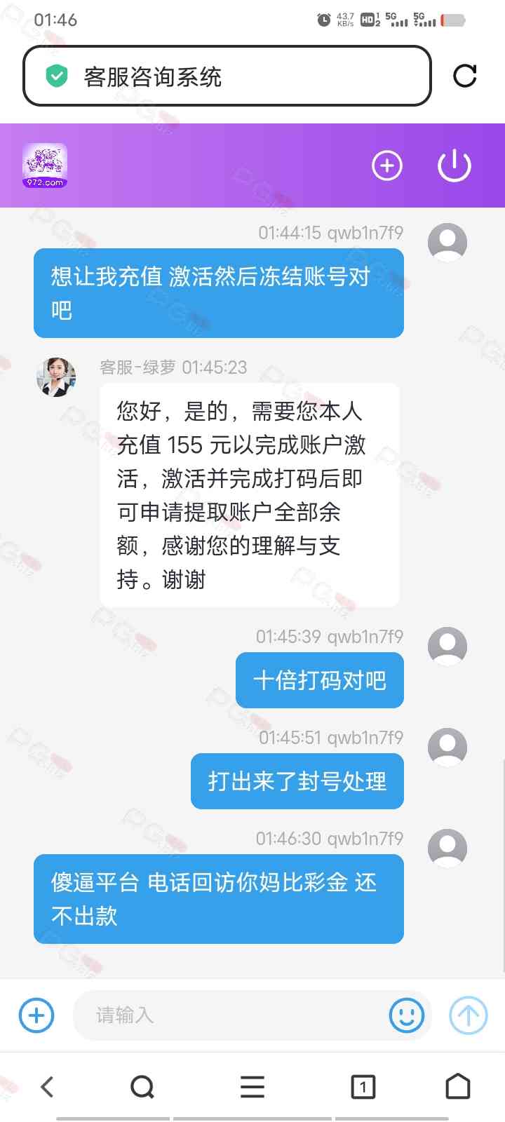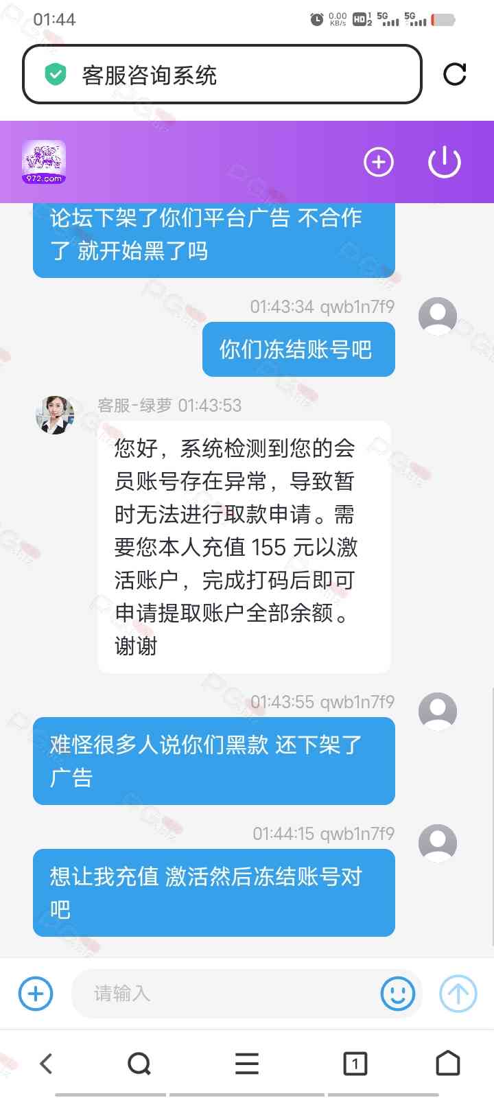 撸成功的老哥,请跟客服说您是从PG论坛 【PG.Biz】过来的。
