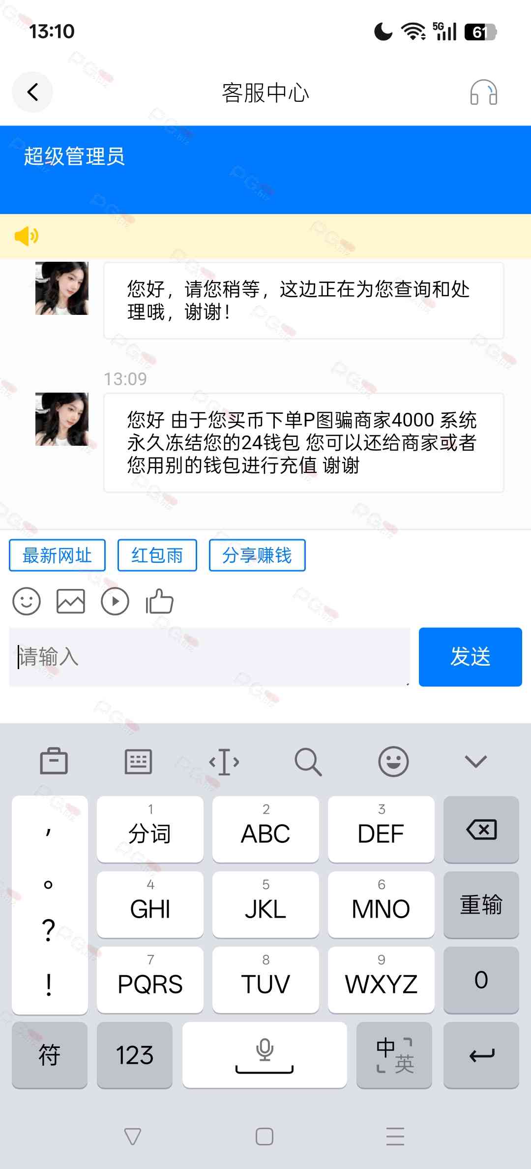 昨天买币碰到个币商,下单和他聊天感觉他是租的收款码,因为他说收款码只有三分钟有效期,就撸了一次1000一次3000,对方都没反应,今天他发现没收到钱举报我钱包被封了,早知道昨天趁热打铁多撸他几次就好了