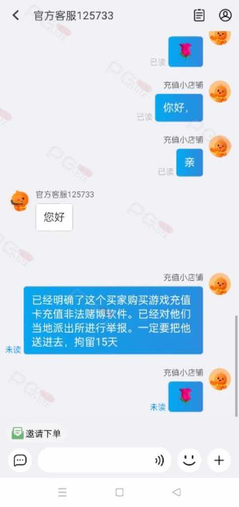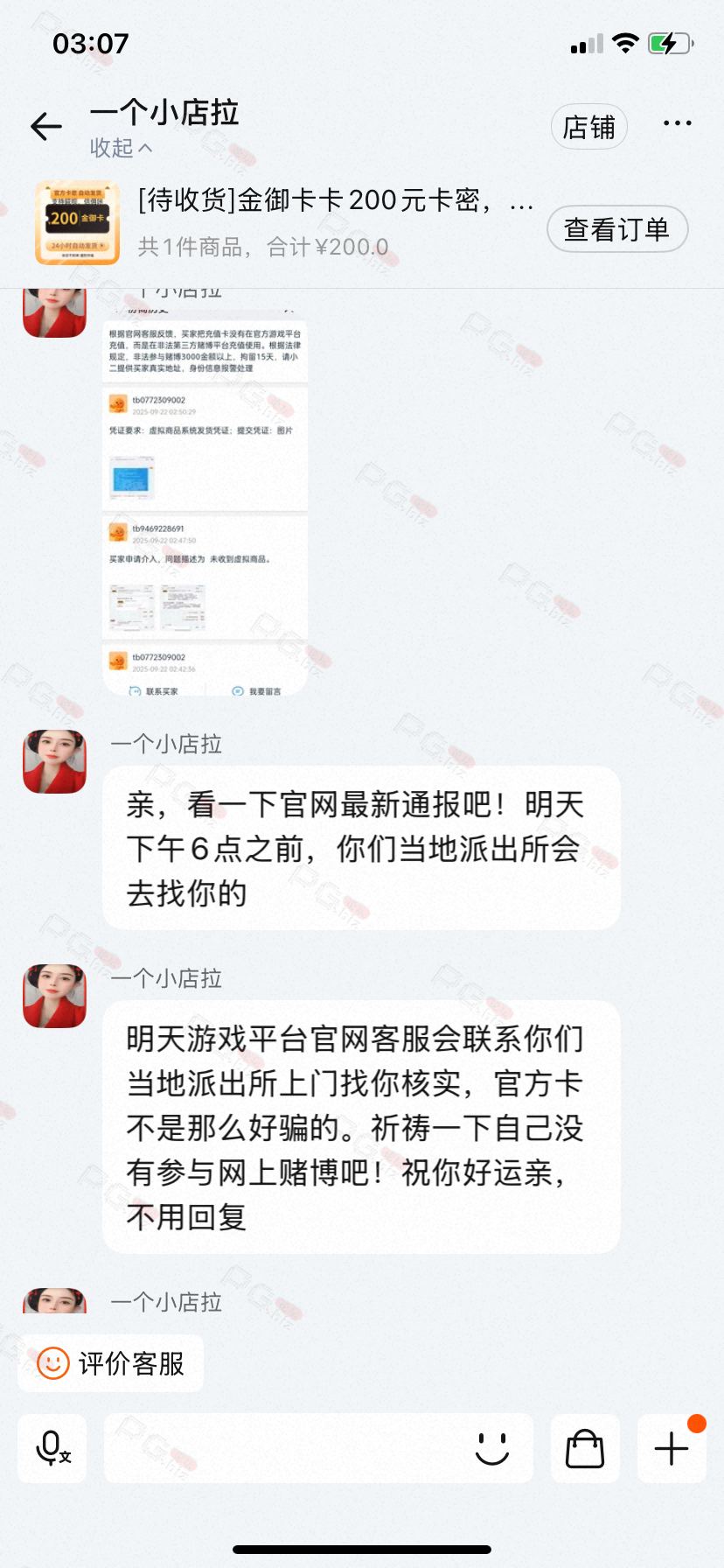 今天准备充200玩一下 去淘宝买了200卡密结果老板发了假的卡密我就去平台客户举报店蒲然后老板就说我参加网络赌博要报警抓我有没有知道的老哥说一下在线等急