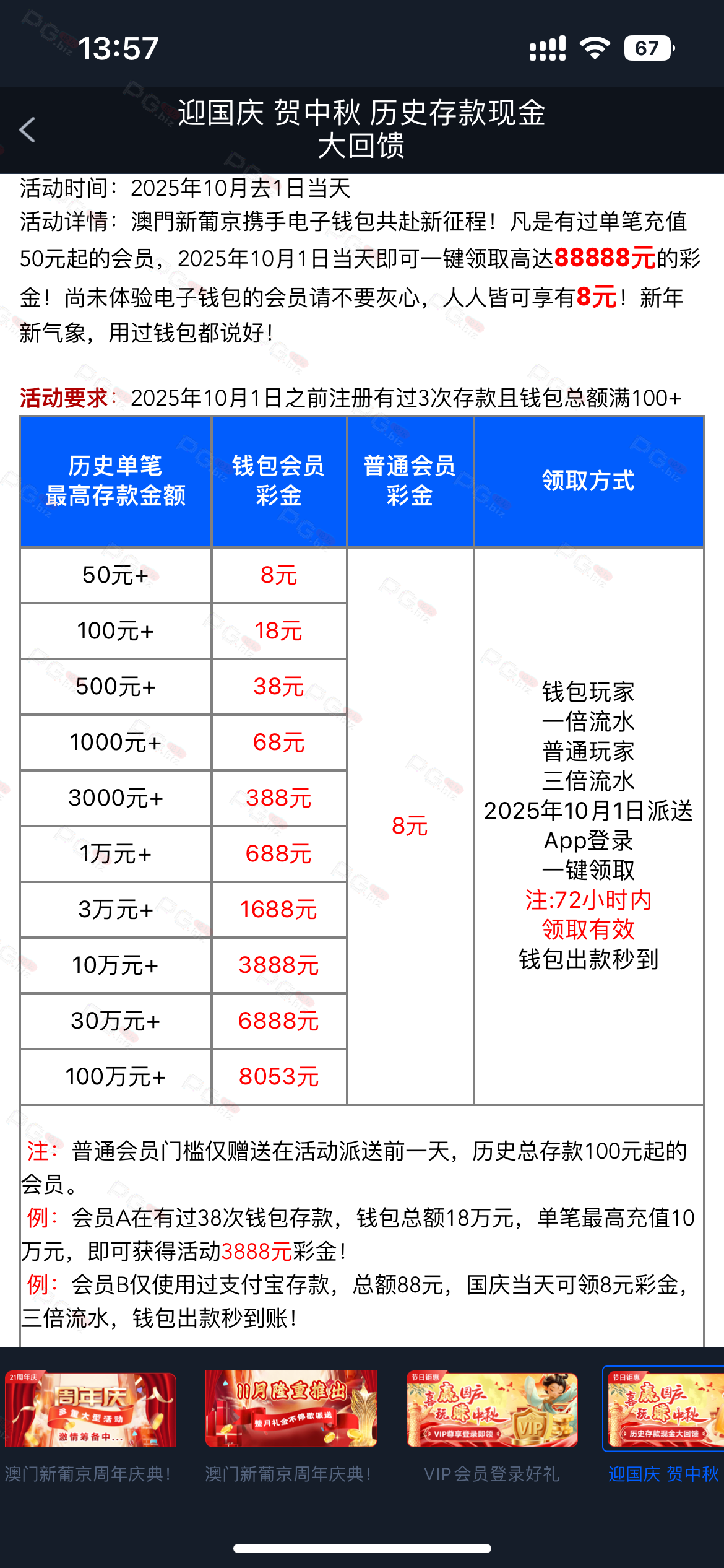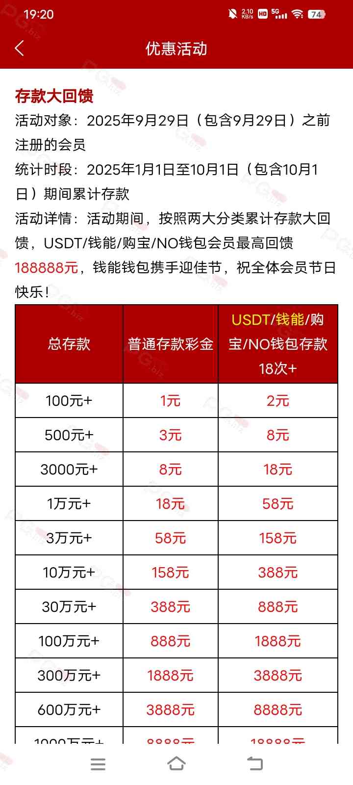 linabiao1 单笔的回馈要到春节才有,前几年好像都是这样,不过对我们玩家而言,就是单笔存款更容易薅羊毛,因为假如单笔存款一万以上和对应总存款十万以上的回馈额度都差不多,不是388就是588