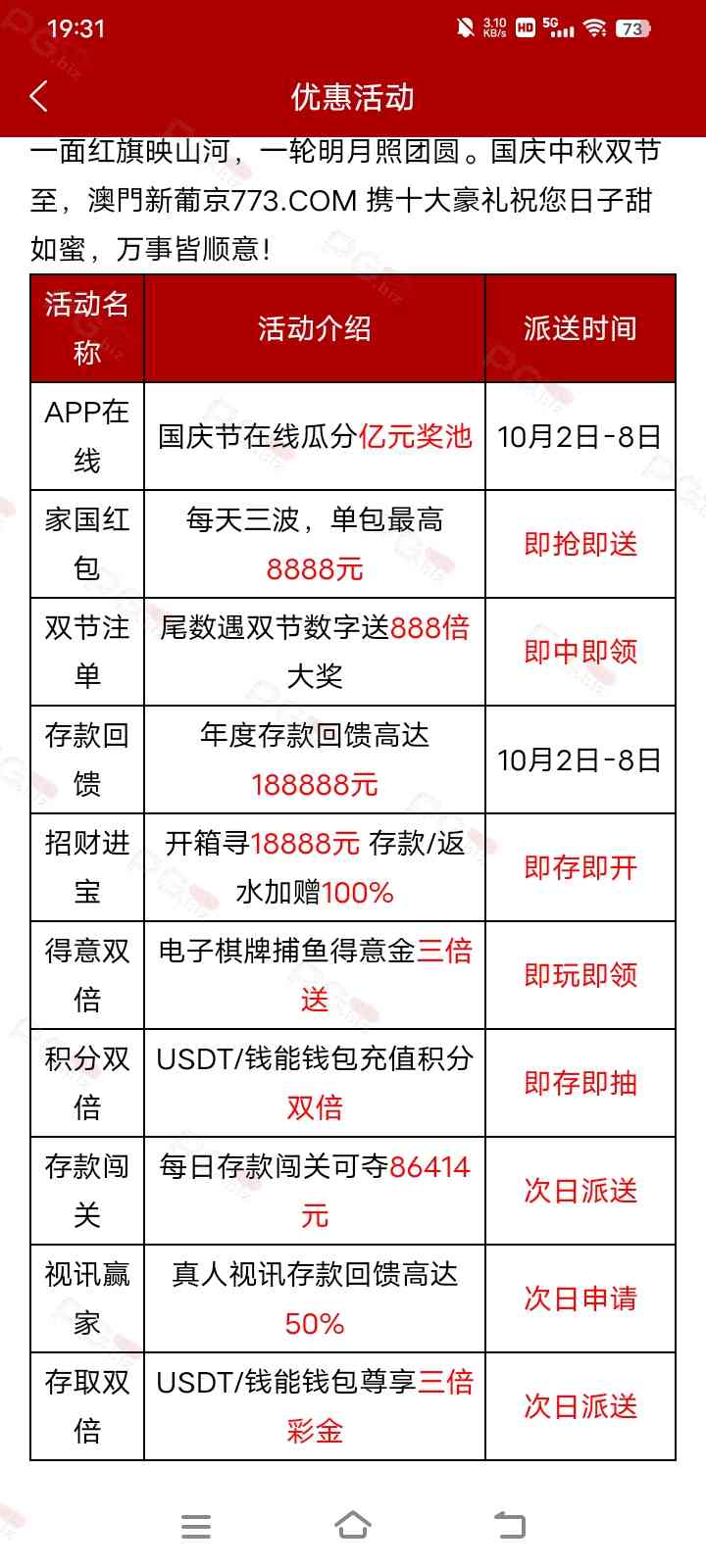 兄弟们完求了,773活动已经出来了,没有历史单笔。只有1到10月总存款回馈