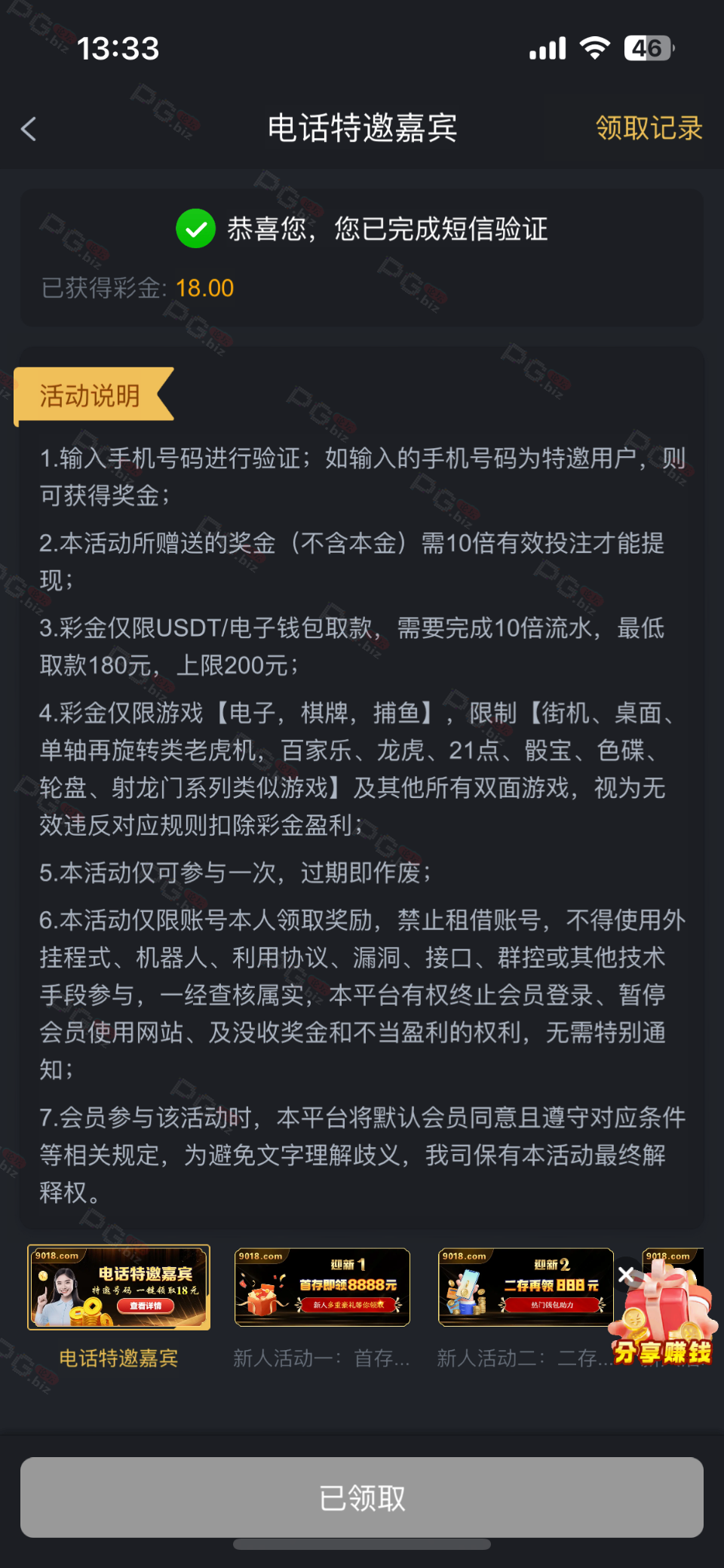 撸成功的老哥,请跟客服说您是从PG论坛 【PG.Biz】过来的。