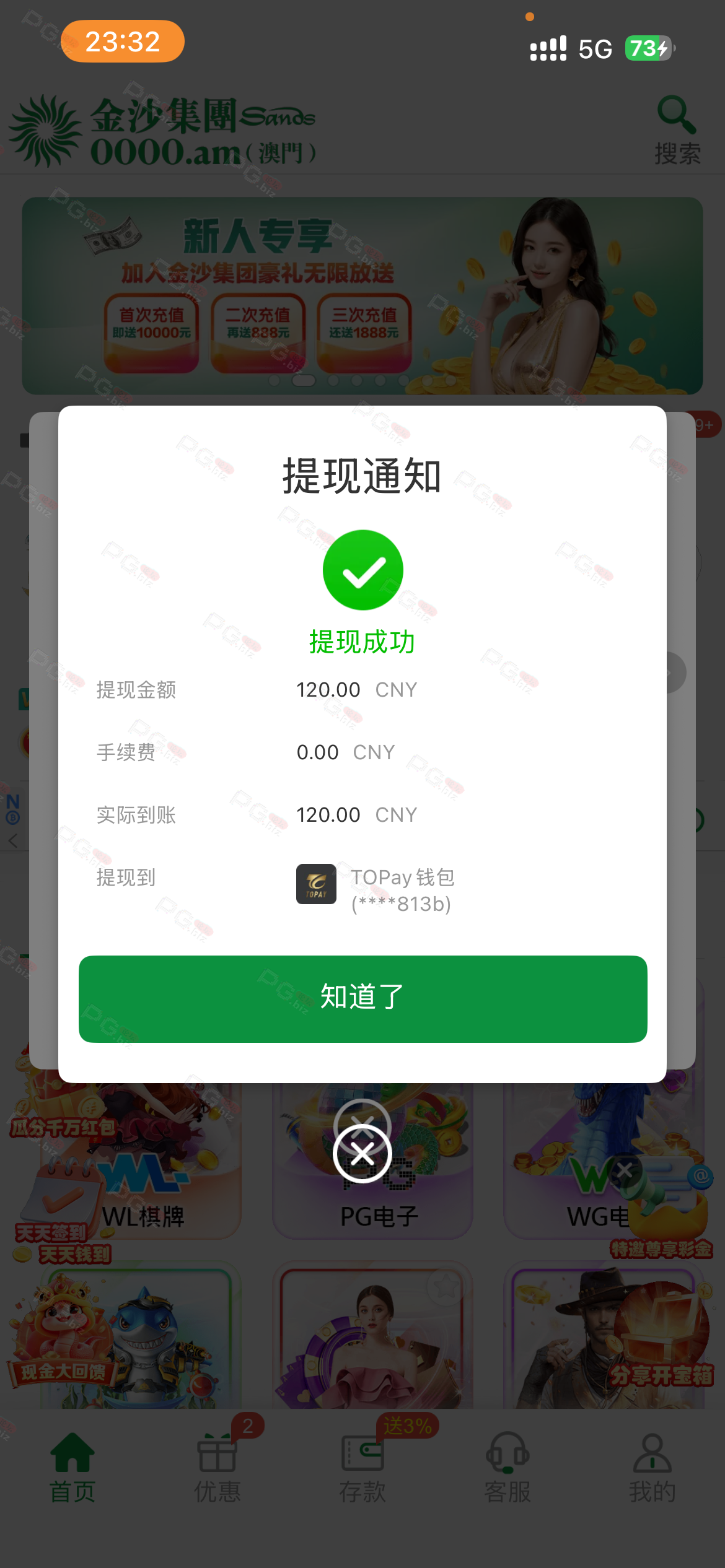撸成功的老哥,请跟客服说您是从PG论坛 【PG.Biz】过来的。