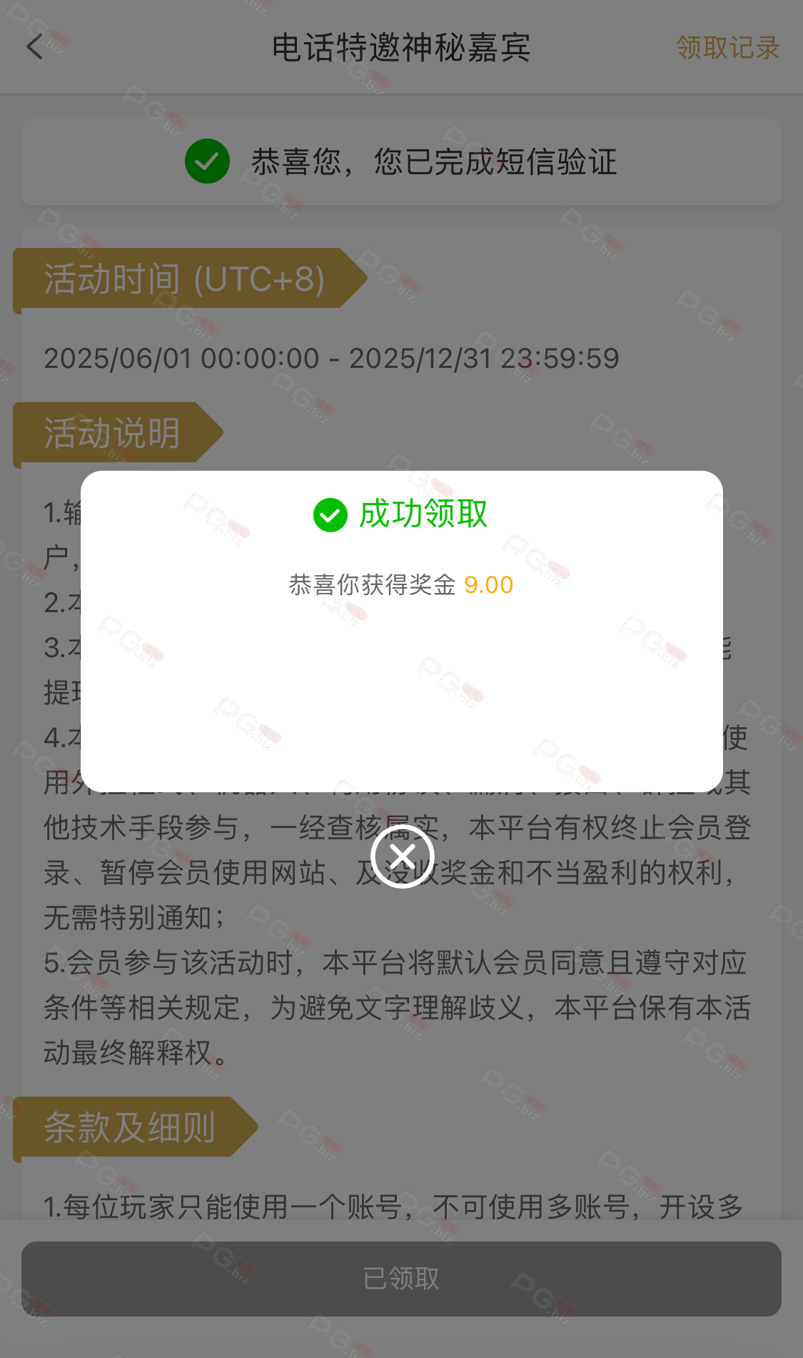 撸成功的老哥,请跟客服说您是从PG论坛 【PG.Biz】过来的。