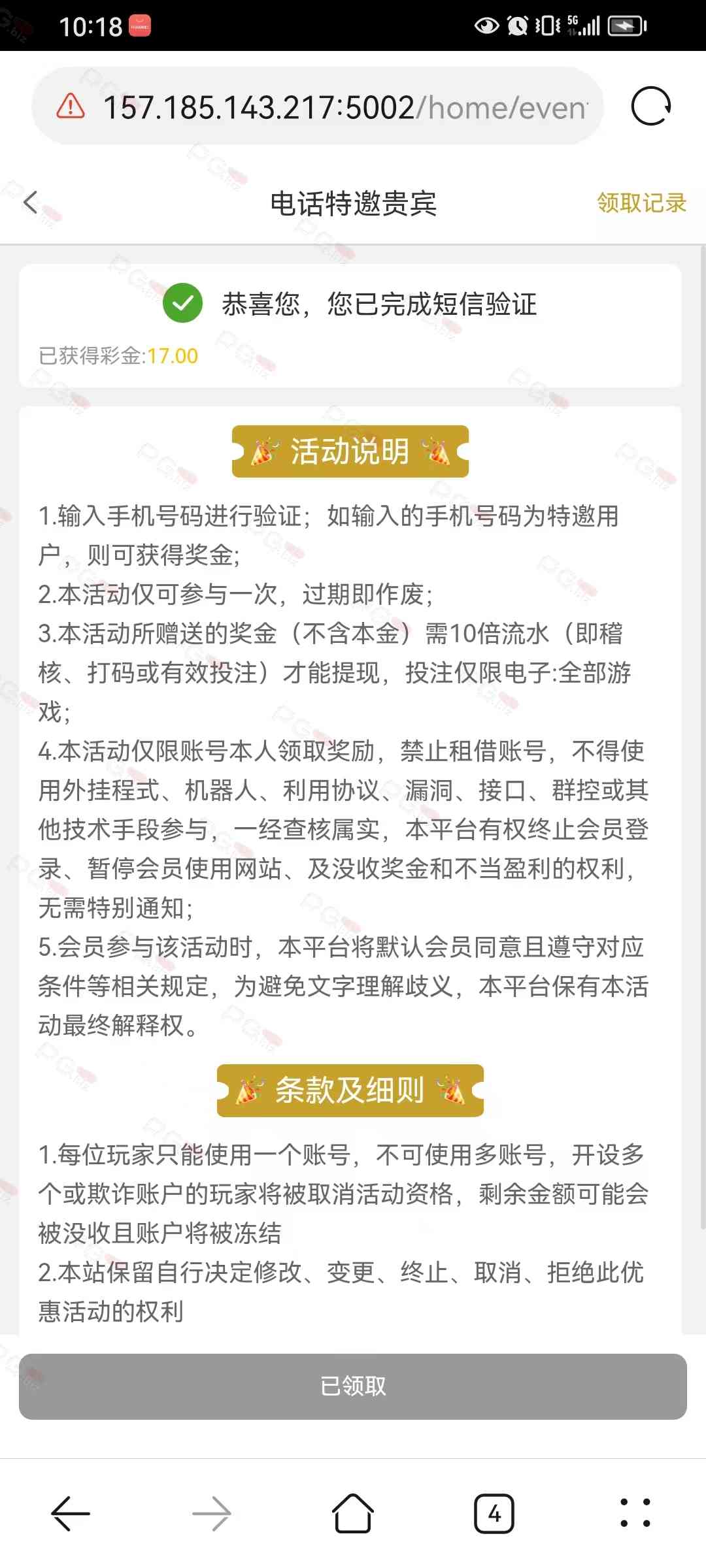 中午打的电话,没听清楚网址,就说是77几2.com,在论坛看到了,就注册试了一下,领了17,打到了140,最后提现100,出款中,不知道能不能顺利出款