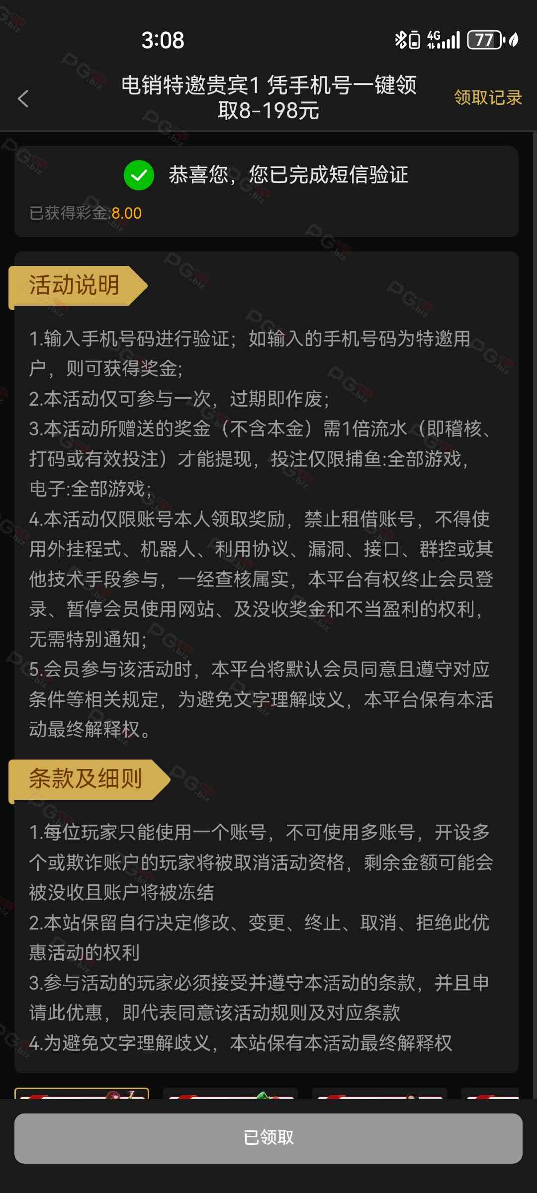 撸成功的老哥,请跟客服说您是从PG论坛 【PG.Biz】过来的。