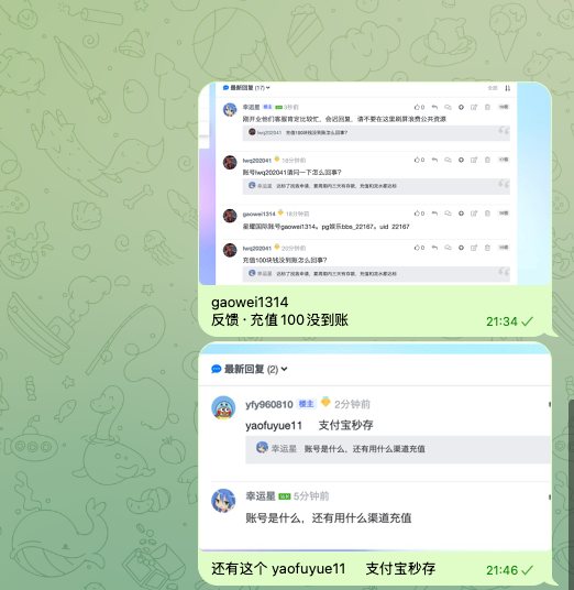 卡密和话费充值问题一律不处理,三方问题不是狗庄问题,自己承担