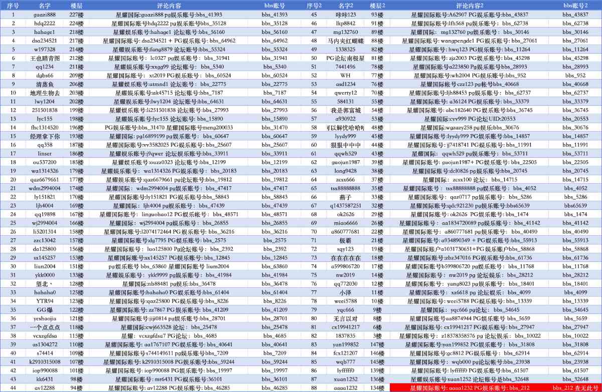 星耀娱乐账号: l20530论坛账号: bbs_55956