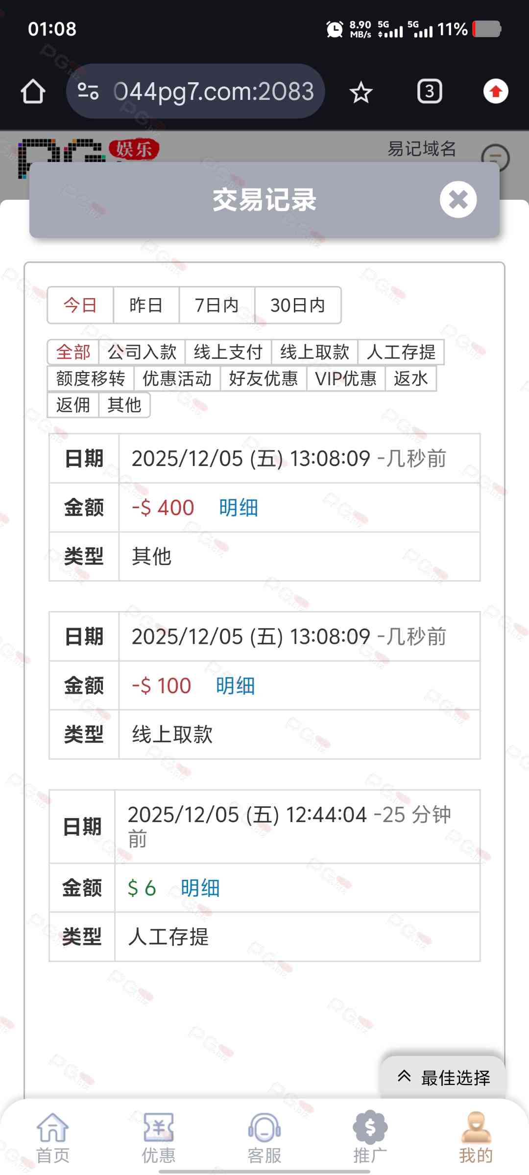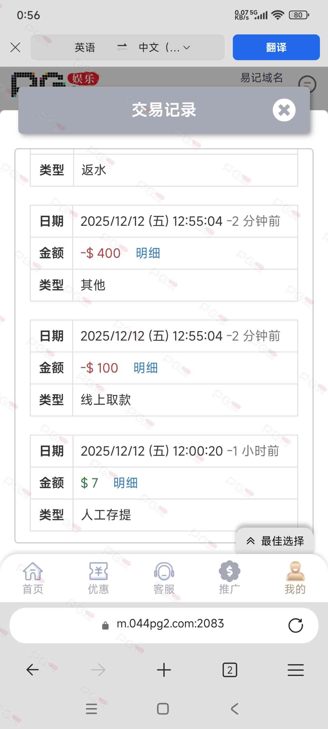 4.充值问题:PG娱乐充值比例为1:5[即充10元=50分]提现比例同样为5:1