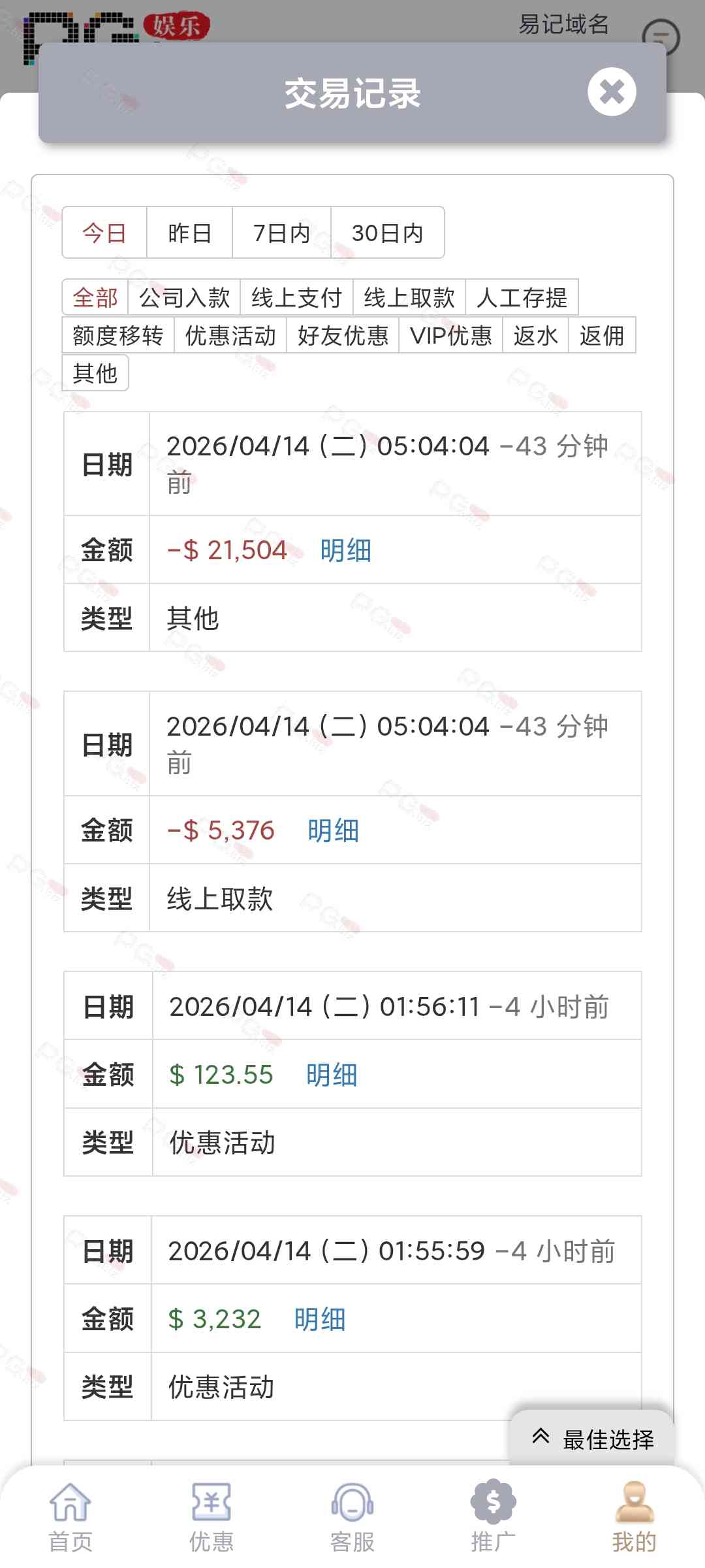 一翻交易记录全是充值