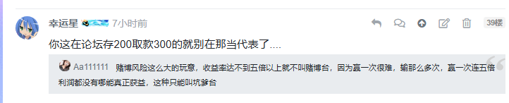 幸运星 你这在论坛存200取款300的就别在那当代表了....